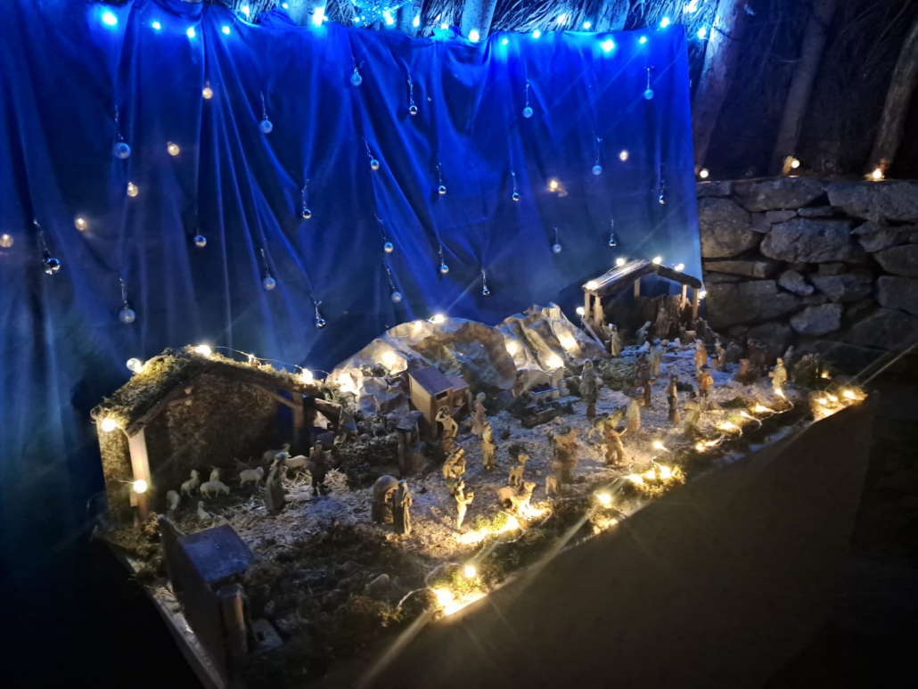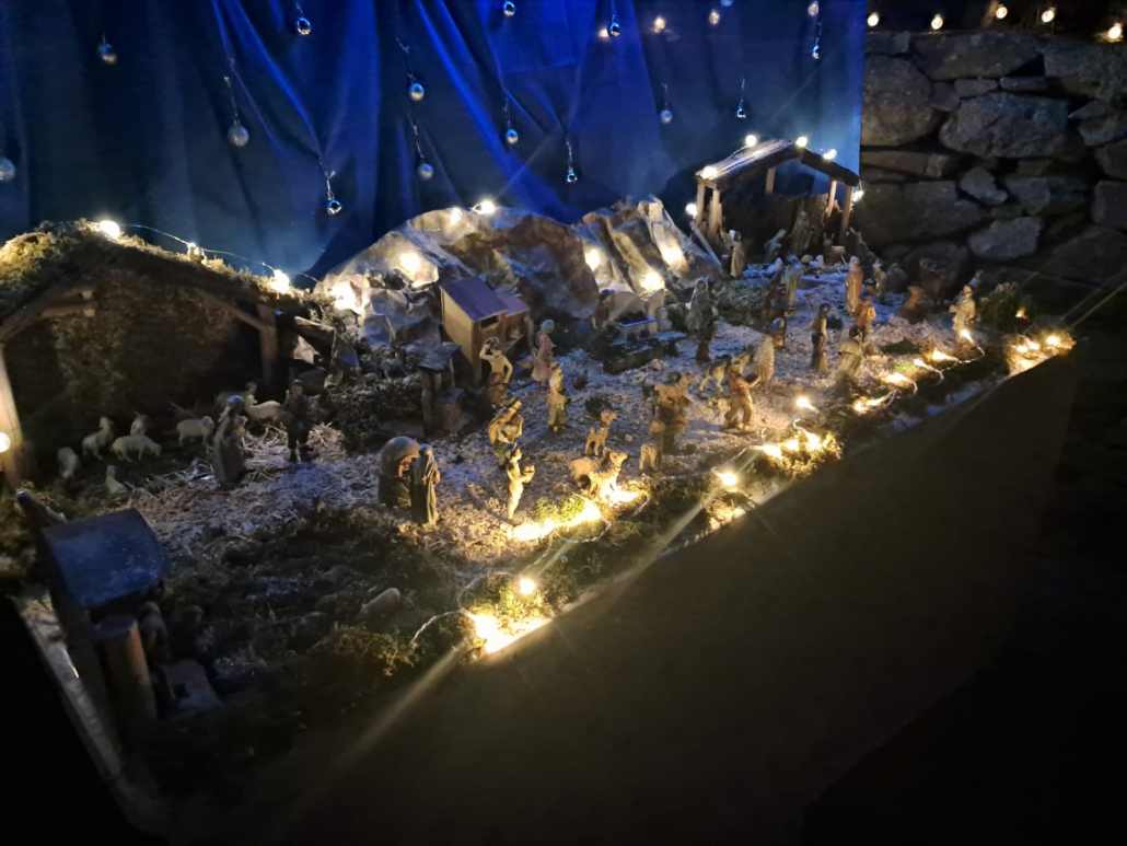 Belén abierto clásico, con más de 50 figuras y que representan la escena del nacimiento y el resto de figuras reflejando escenas reales.