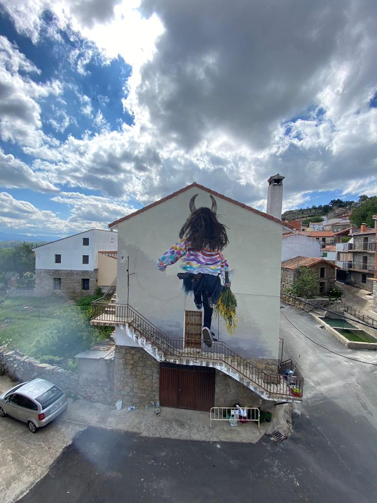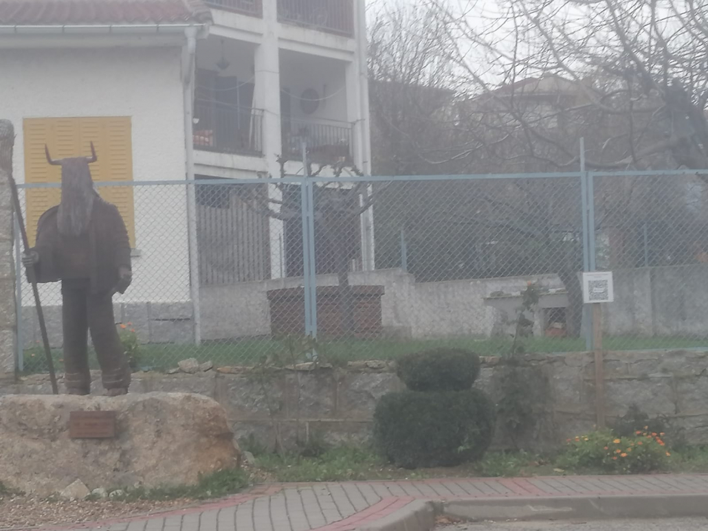 La escultura del cucurrumacho realizada por Juan Jesús Villaverde. Justo al lado, hay un QR que te dice que cosas puedes visitar en Navalosa.